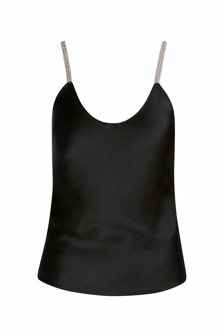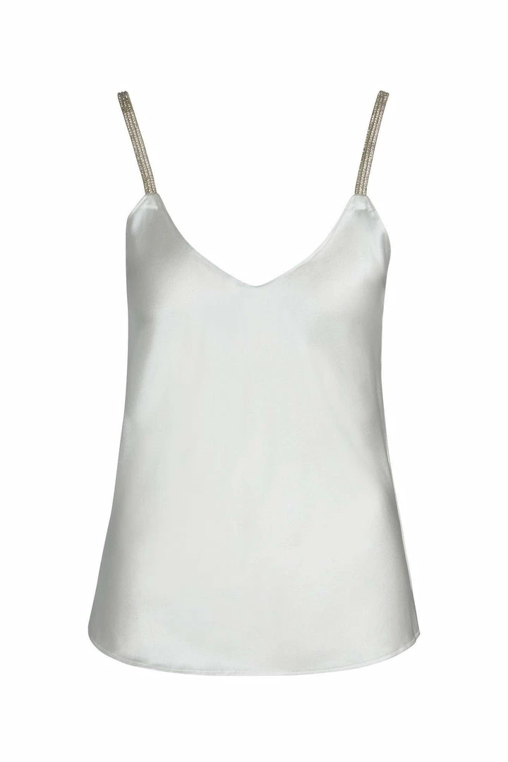 Wear the Chiara Cami day or night!Β This beautiful silk cami features hand-beaded crystal straps and luxurious french seam construction.Β Paired with the Chiara Tap Short for a luxurious sleep set.