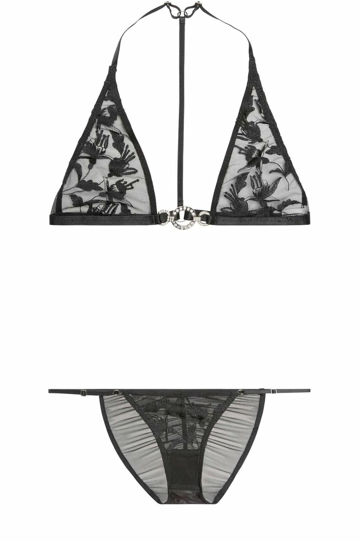 The June Lingerie Set is made with imported Italian lace. The June braletteβs halter style blends perfectly with the back t-strap. We added a gorgeous rhinestone circle centerpiece in the front for that extra bit of sparkle. Paired with the June Panty.