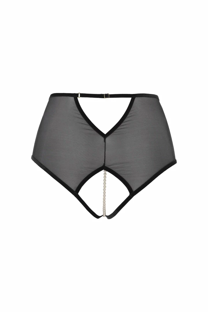 Inspired by the historical capital of Japan. Made with Leavers lace, elastic tulle and velvet. As with all Bracli pieces, the most provocative touch is the necklace made of a strip of pearls, which stimulates the most pleasurable parts of a woman.