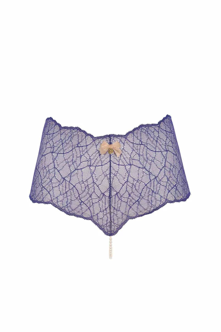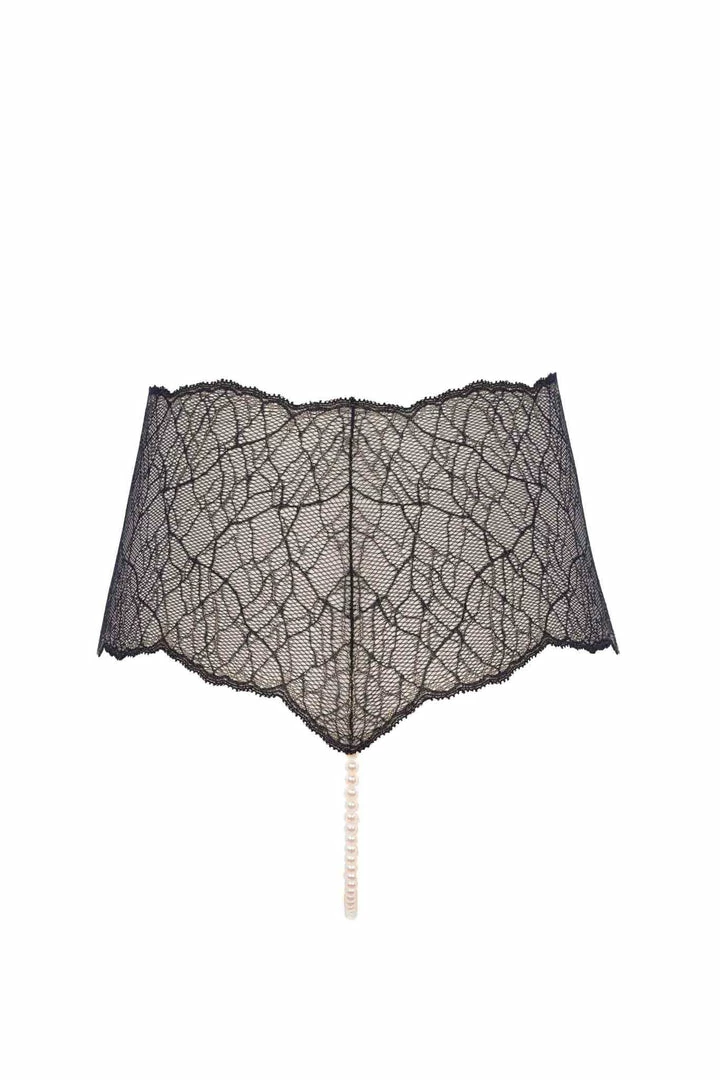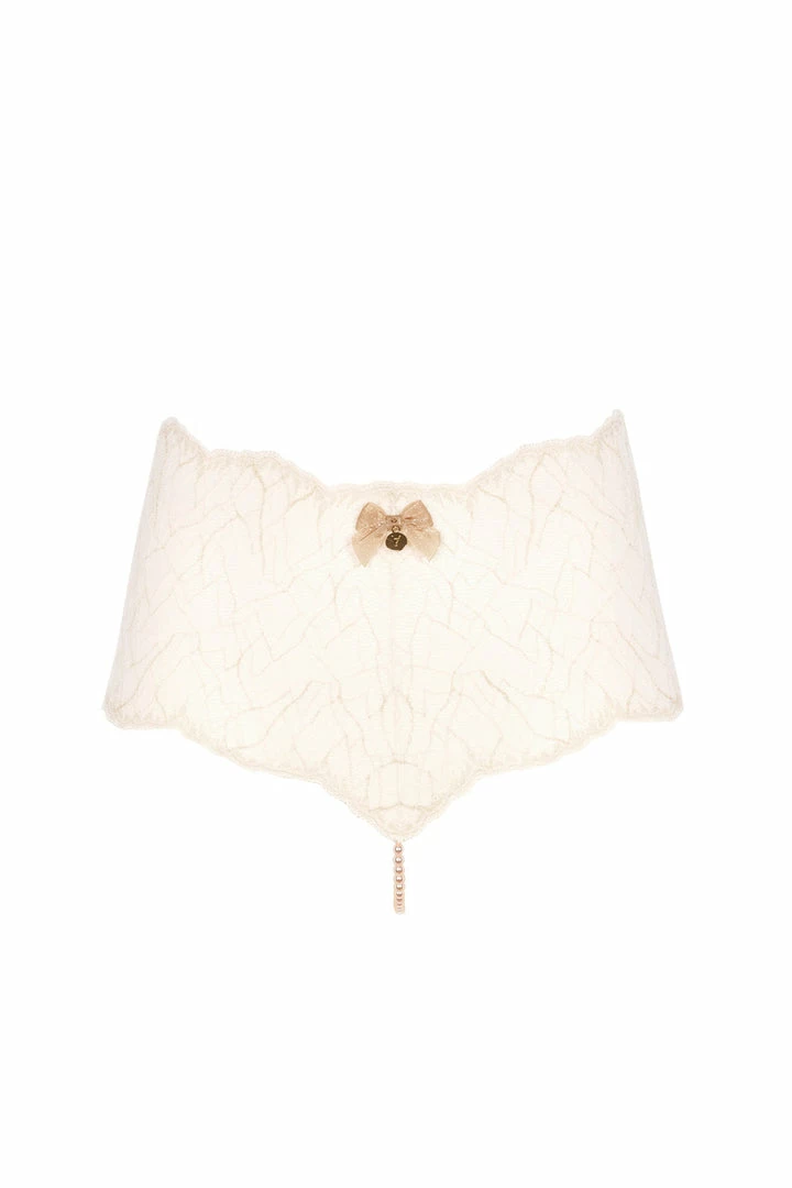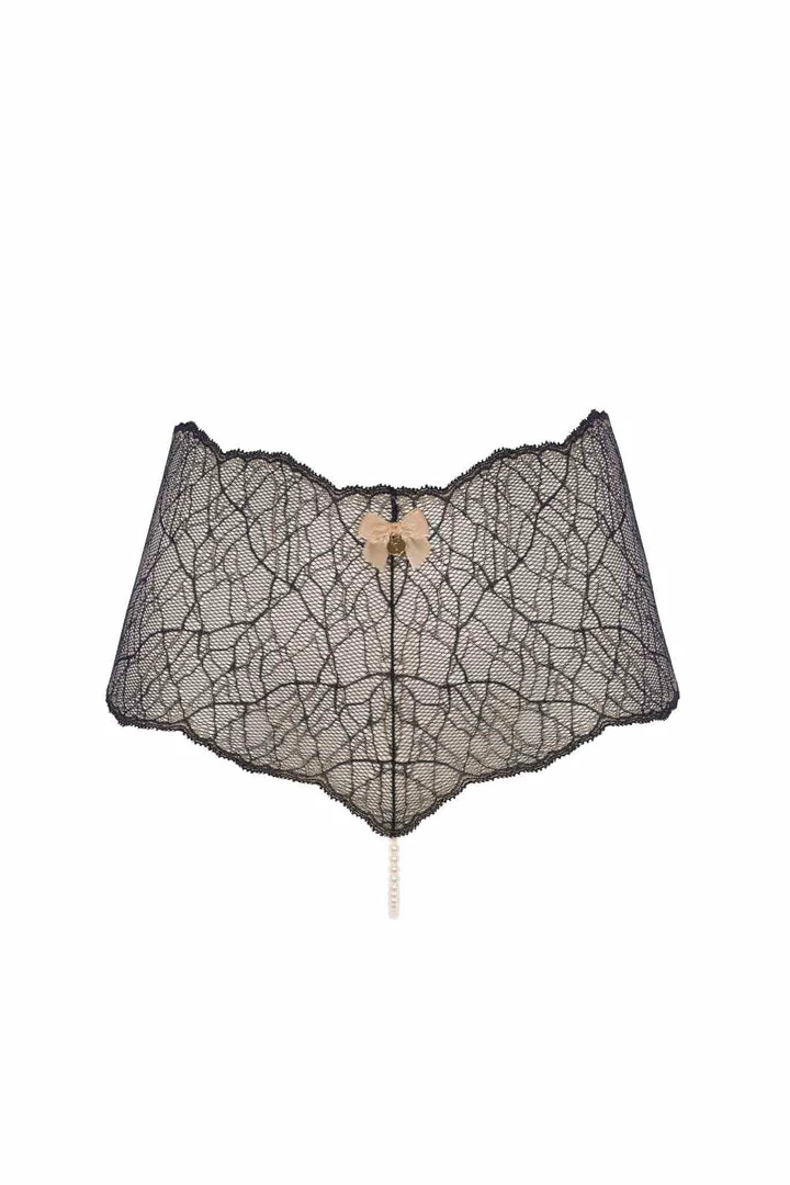 The SydneyΒ High Waist ThongΒ is made from fine Italian lace with a golden lurex highlight.