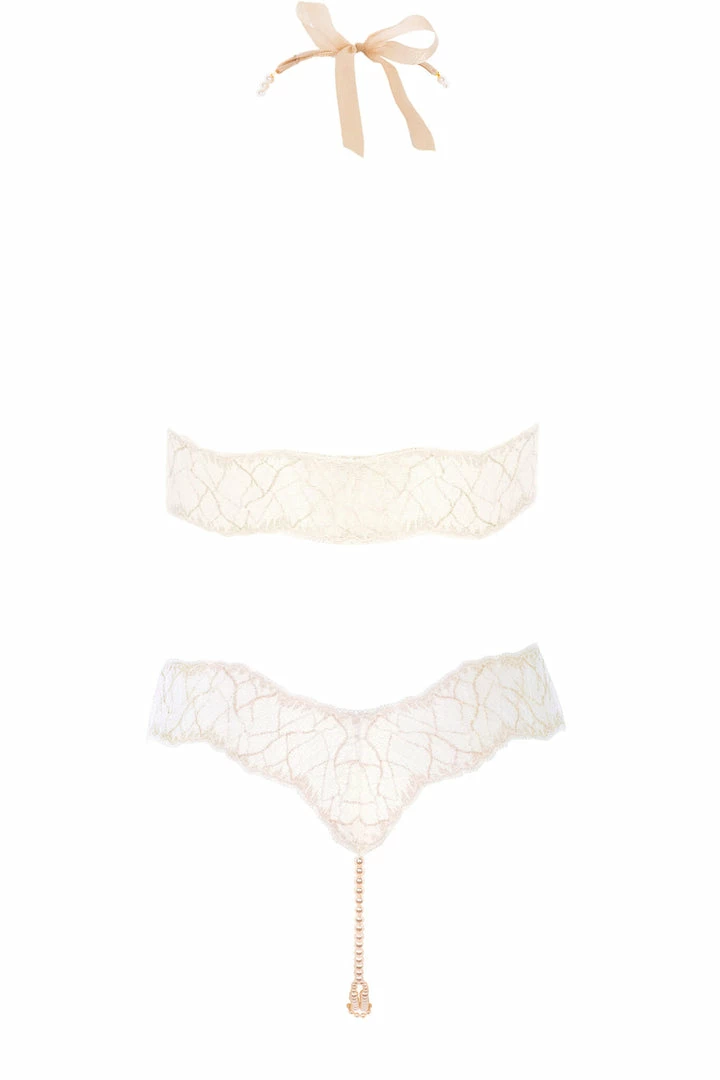 Comfortable, elegant and tempting, this is our Sydney Bralette. Featuring a pearl choker and a suggestive neckline, and perfectly paired with the Sydney Double Strand Pearl Thong.