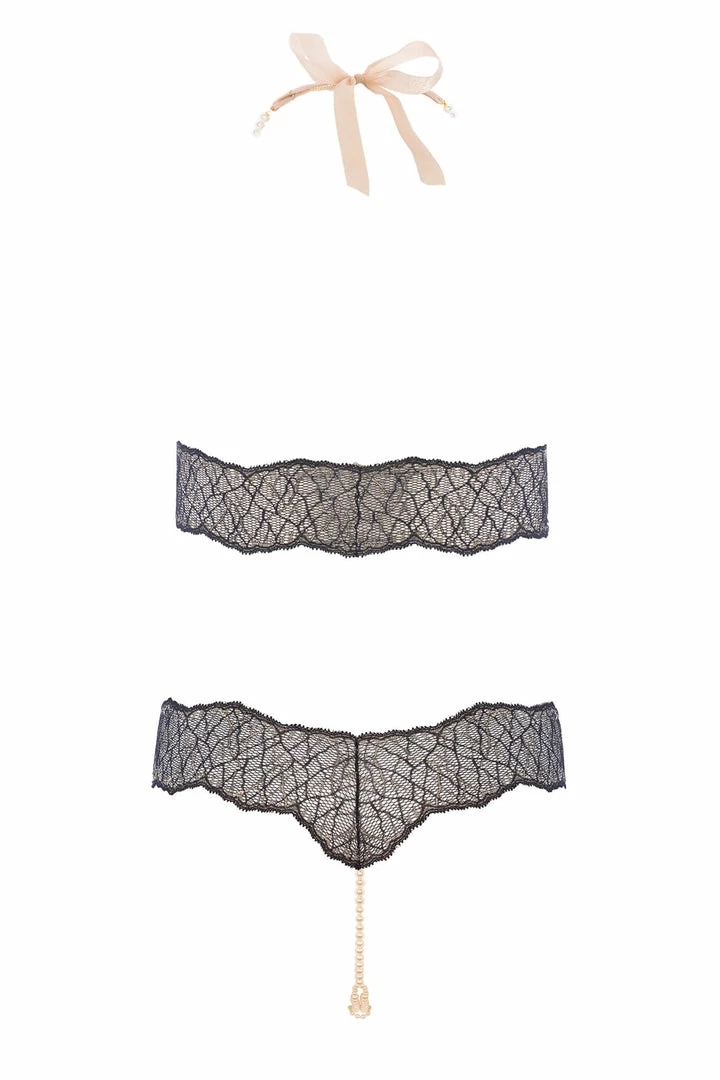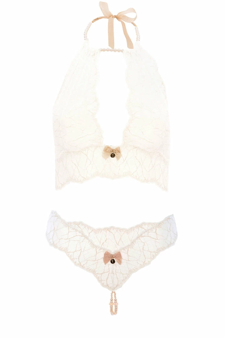 Comfortable, elegant and tempting, this is our Sydney Bralette. Featuring a pearl choker and a suggestive neckline, and perfectly paired with the Sydney Double Strand Pearl Thong.