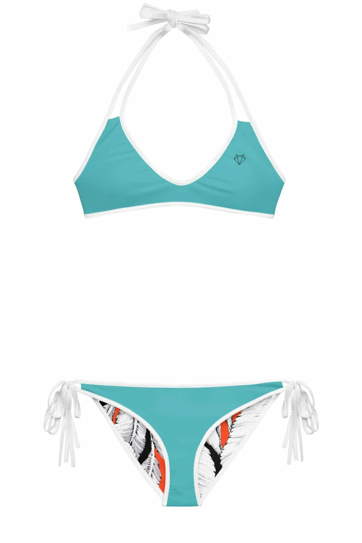 Reversible so itβs like having 2 bikinis in one β giving you more options when you travel to a tropical paradise! Mix & match to your mood if you want to show off the beautiful artwork or solid color.