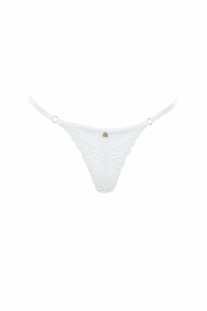 Adjustable sides with gold ring sliders and gold ring accent, this skimpy panty is an incredibly sexy addition to every womanβs closet. Designed with the signature Demery Jayne collection lace.