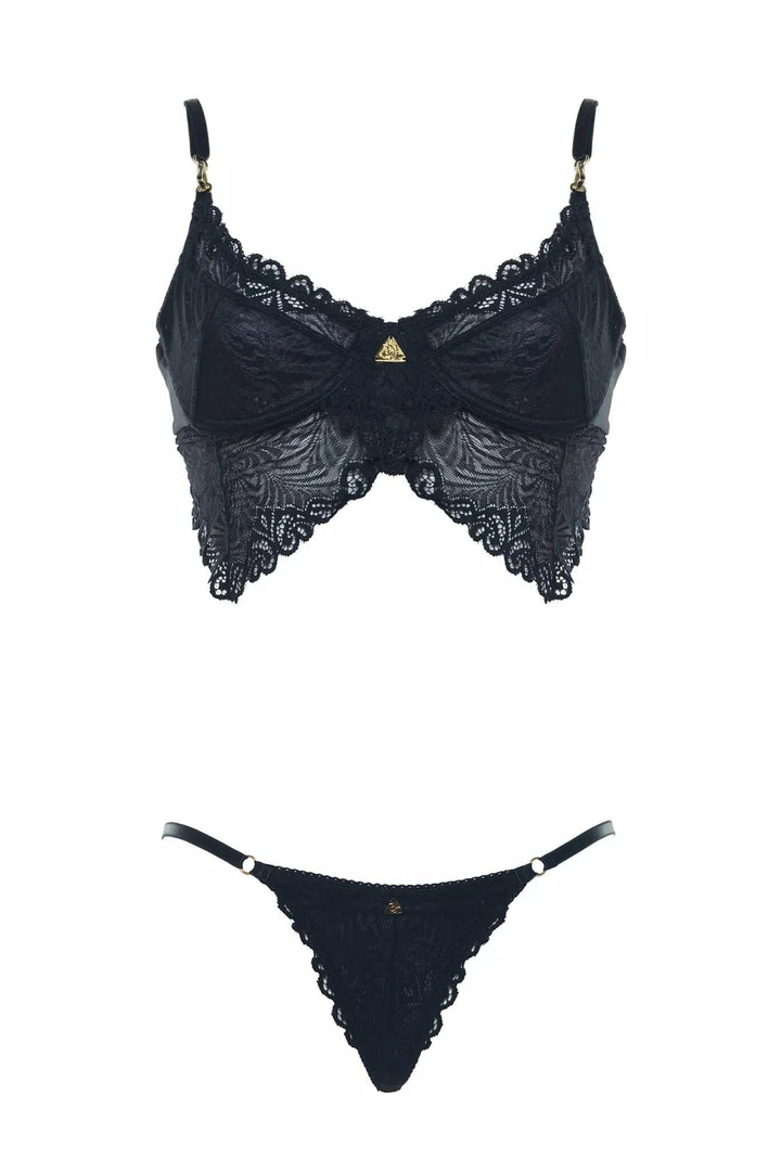 Elegant lace bra with adjustable back and shoulder strap, gold clasp and ring embellishment. Perfect for high end events, luxury settings, intimate evenings and casual streetwear attire. Made with Signature Lace by Demery Jayne.
