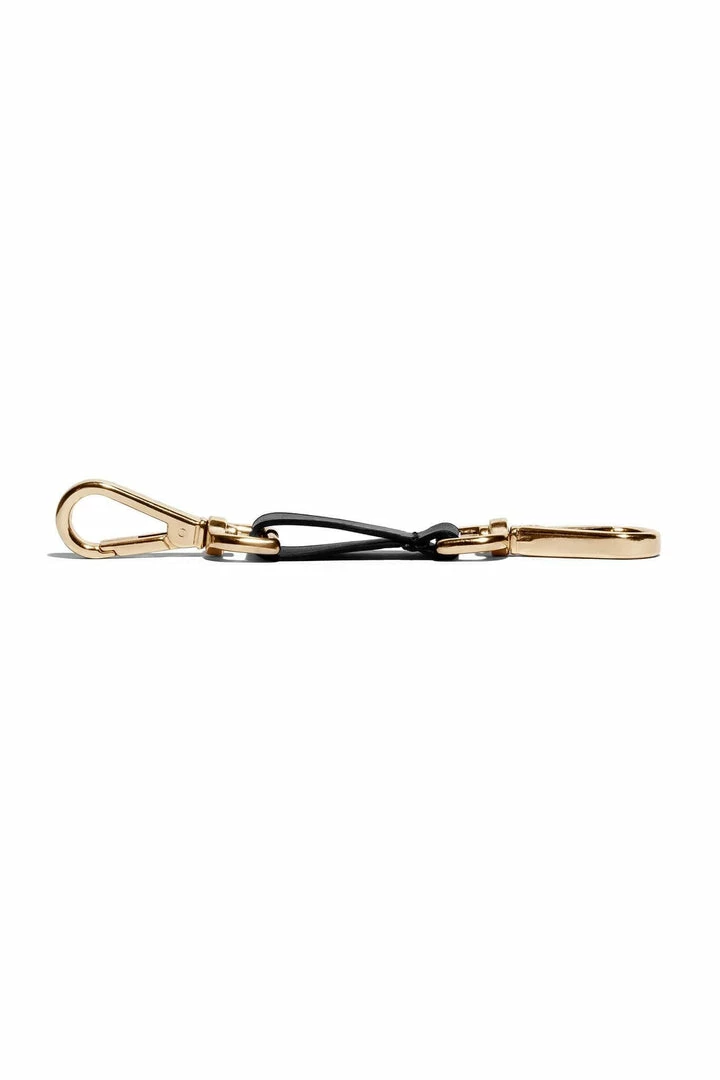 - Handcuff link made of natural tanned calfskin with golden or silver brass snap hooks