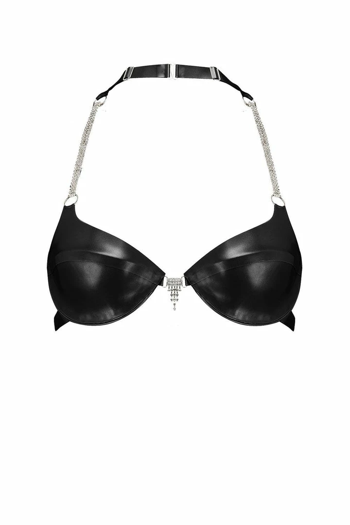 The first latex cradle-less plunge bra with a waterfall gem appliquΓ© to the centre front. Made using a thick and supportive latex, the adjustable back straps alter to fit your band size perfectly and are finished with our iconic branded buckle. Diamante straps to the front sit in a halter neck style, with adjustable strapping to the back of the neck and a swan hook to fasten.