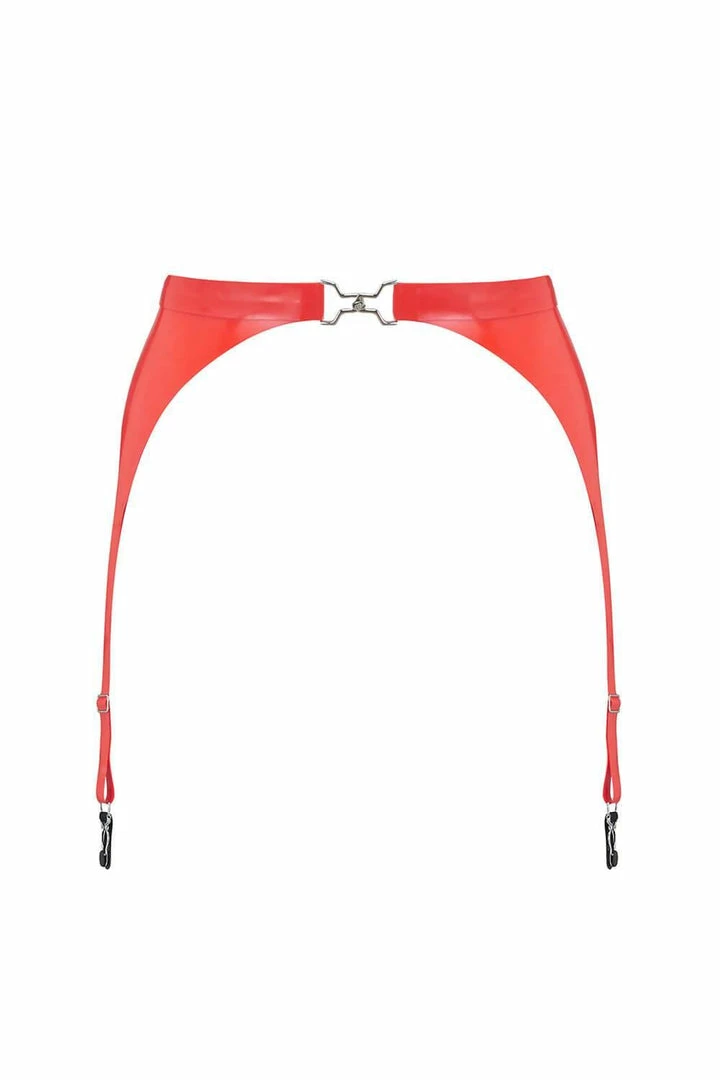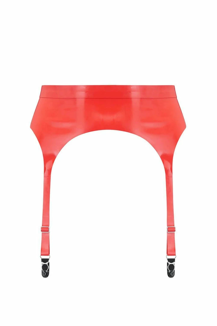 Pull your outfit together with this classicΒ red latex garter belt forΒ the lingerie addict. Featuring a double thickness waistband, with an exclusive Elissa Poppy branded buckle and adjustable strapping to the suspender clips. Pair with our range of latex lingerie and latex stockings to complete the look.