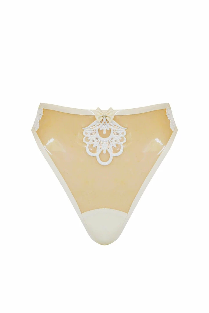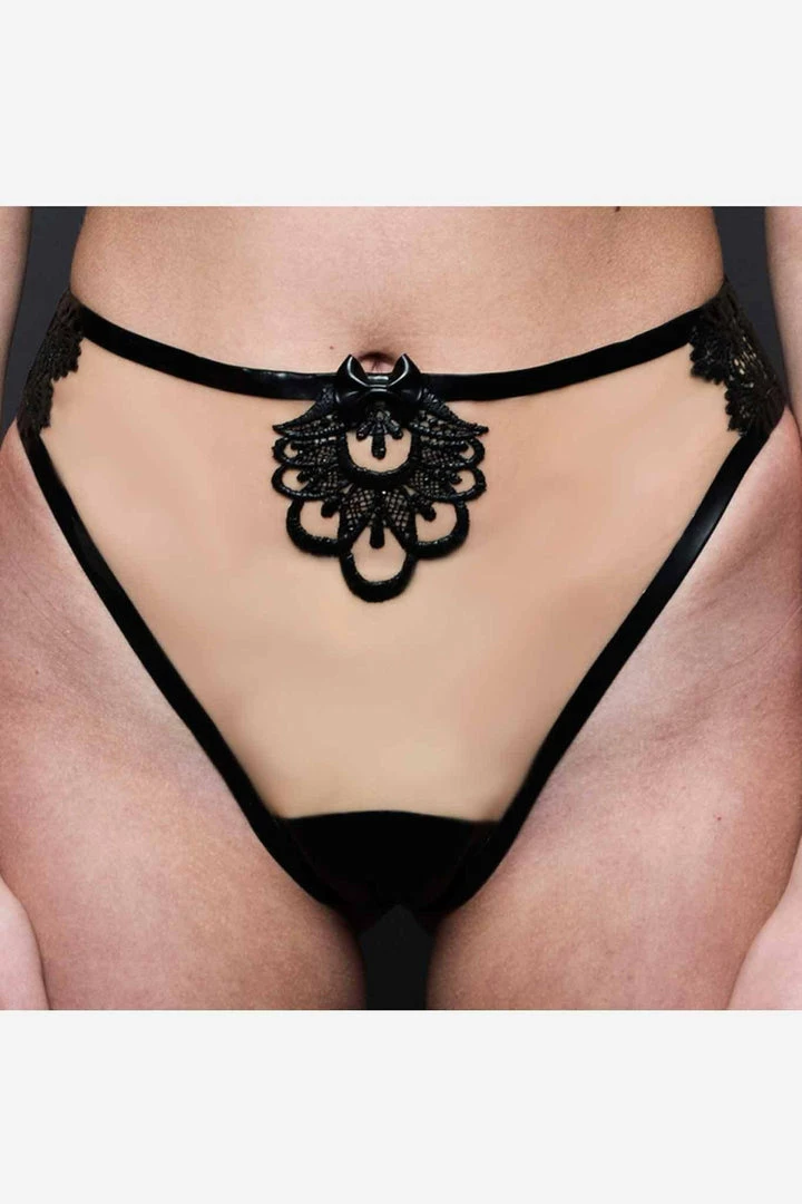 The Maia Crotchless Knickers, the ultimate cheeky staple piece for any lingerie lover’s collection. Sitting high on the waist the figure hugging knicker sculpts your body to create a flattering and beautiful shape. With bottomless detailing to the back and Lacetex® and bow embellishments to the front, this piece won’t be forgotten very easily.