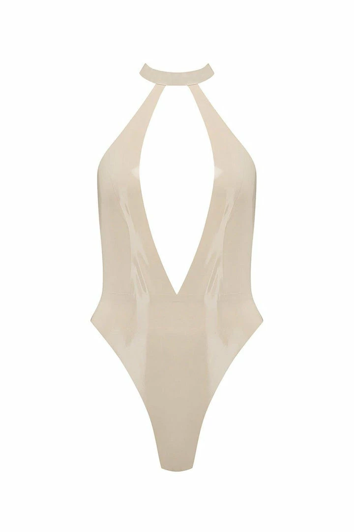 With a choker fit to the neck and a plunge neckline to the front and back, theΒ White IvoryΒ Latex Body is a stand out staple for your Elissa Poppy collection. Featuring a high leg design and tailored panelling, this thong Body offers you the most flattering shape possible. Fastened using an exclusive Elissa Poppy branded buckle, double thickness quality latex to the choker panel, every little detail has you covered.