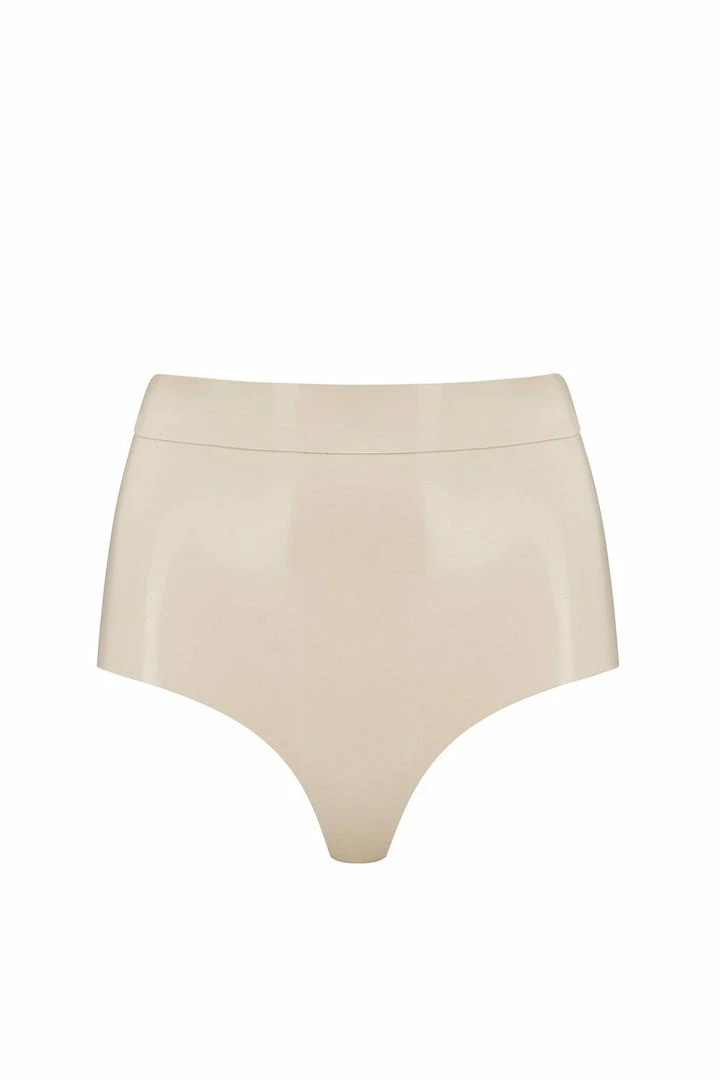 Your ultimate high waist brief. The White Ivory LatexΒ Disco Pant, with tailored panelling at the back to flatter your lovely curves and created using double thickness quality latex to the waist band to pull in the waist. Pair with our range of latex bras to complete the look.