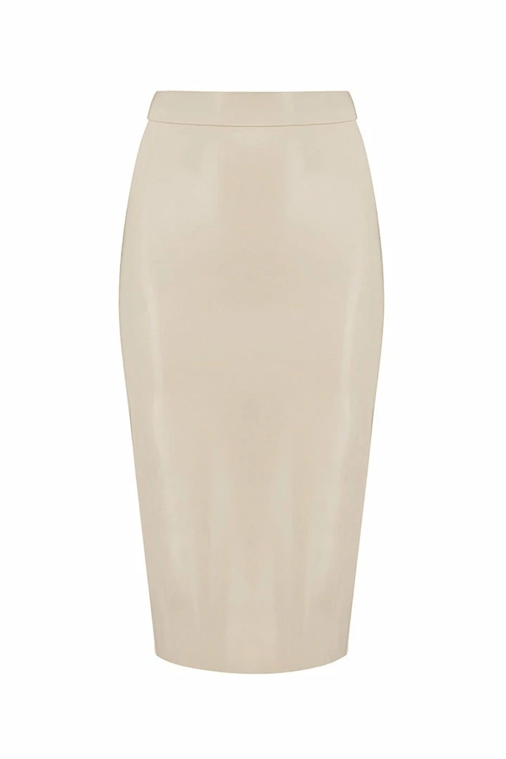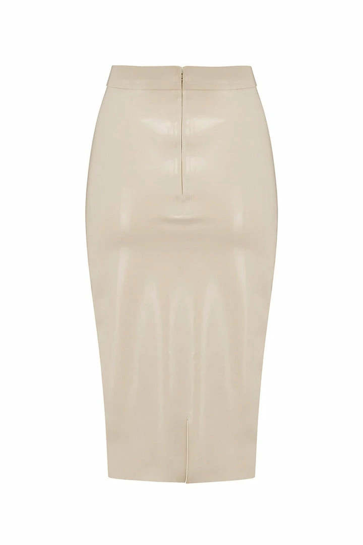 A classic staple forΒ your wardrobe. Our White IvoryΒ Latex Midi Skirt sits high on the waist, using double thickness quality latex at the waistband to accentuate your curves. Paneled sections are tailored perfectly to your bodyβs contours, whilst the reinforced back split, using beautifully subtle cotton taping, allows the wearer to walk with ease.Β