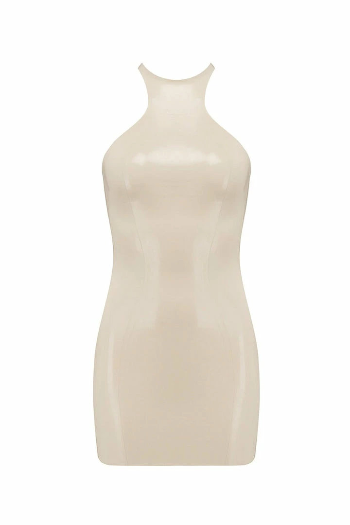 TheΒ white ivory latex mini dress, featuring a unique racer neckline and cross over straps. Scooping low to the back the dress is fastened with a hidden YKK zip and is secured inside with a swan hook for extra durability. Its paneled design is tailored to the contours of your body for the ultimate fit.