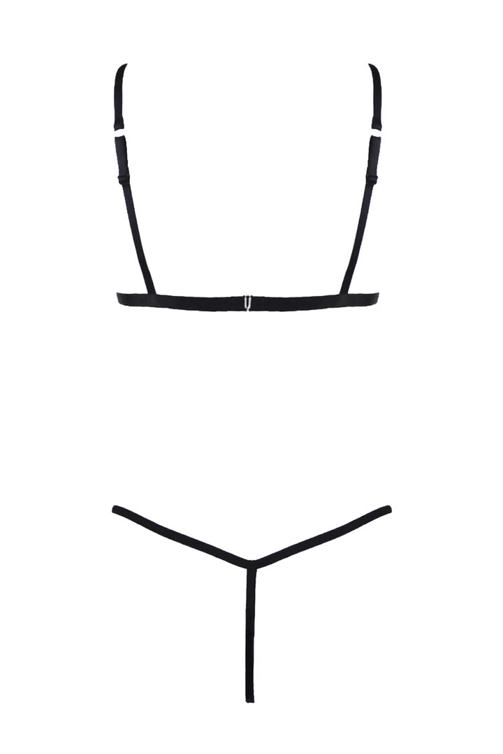 Matched with an interesting frame G-string made of narrow elastic bands. The frontpart has refined cutout and is decorated with a soft pink ruffle. The thong has a gusset. This G-string promises interesting moments for two and is guaranteed to make the temperatures rise! After ordering, the thong is made in our studio in Berlin.