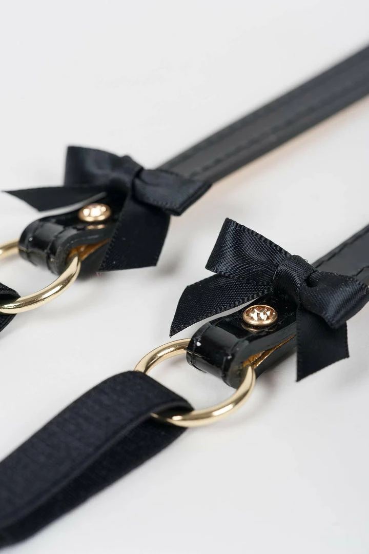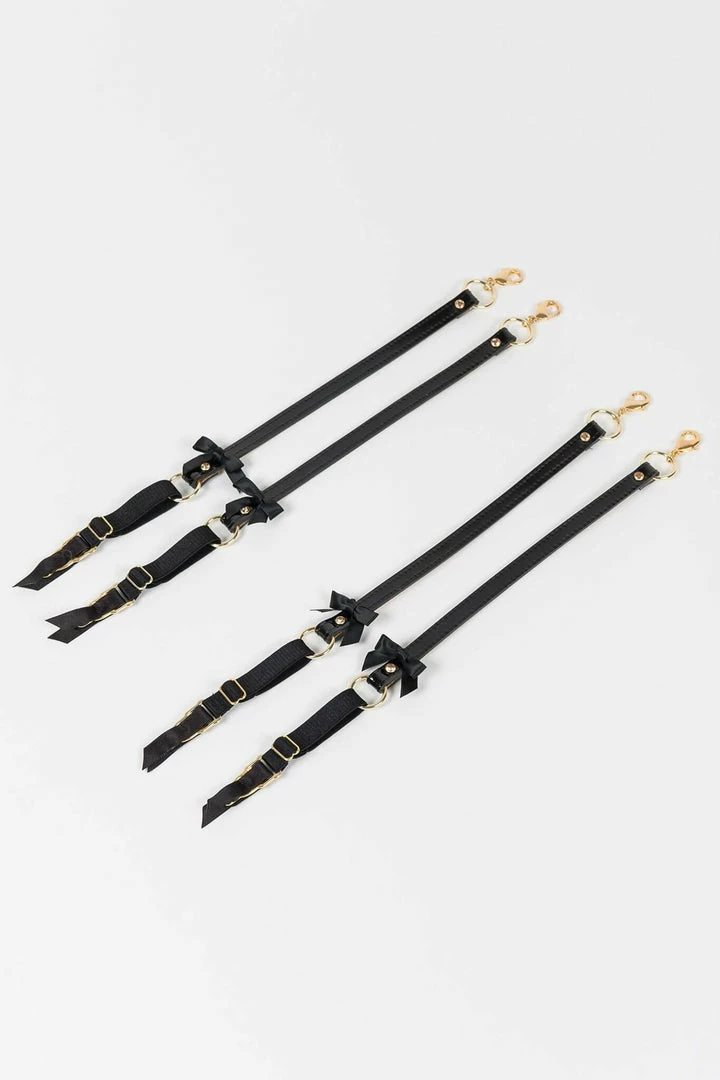 Make the perfect transition from the dance floor to the bedroom. Pair with your favorite high heels or stiletto boot. Featuring detachable leather ankle restraint leads so your lover can restrain you to a chair or the bed! Detachable leads can also be used separately as handcuffs. These sexy cuffs are an absolute must have!