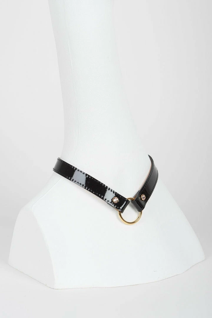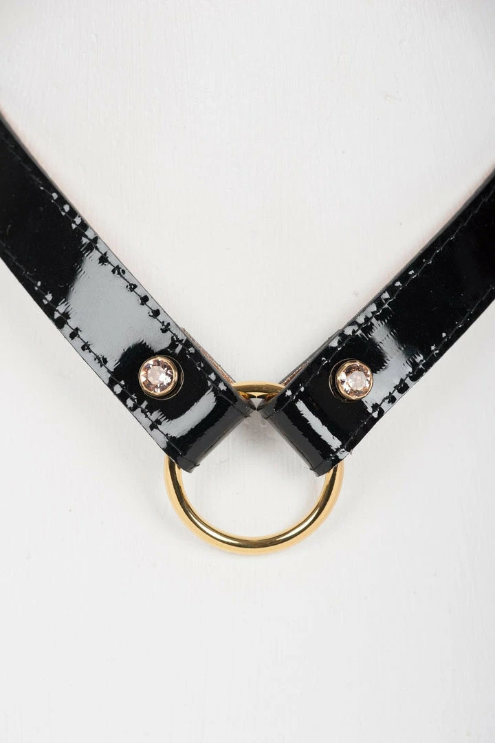 - Shiny Black Patent & Rose Gold Metallic Leather Stitched Straps
