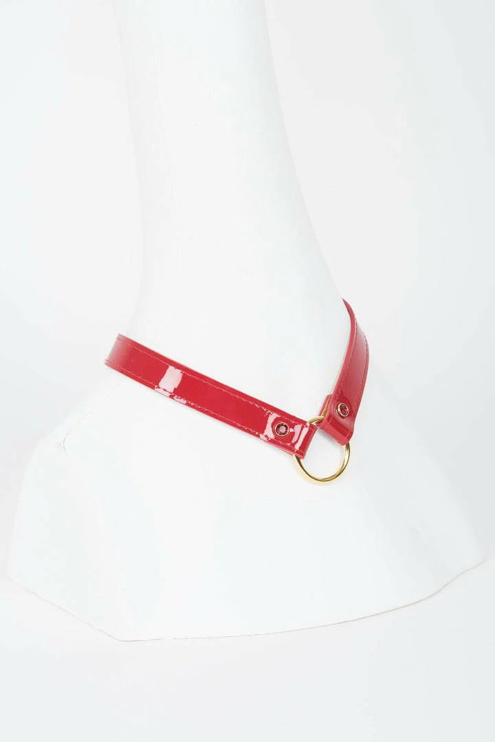 - Shiny Red Patent lined with Metallic Gold Leather Stitched Straps