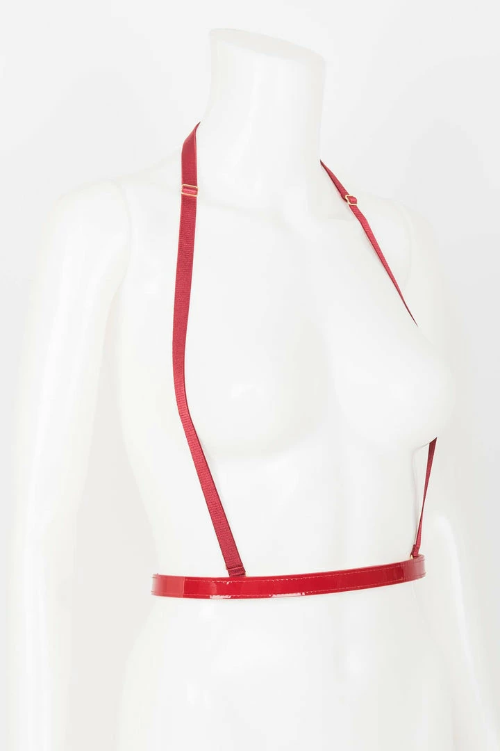 - Shiny Red Patent Leather with Metallic Gold Leather Stitched Straps