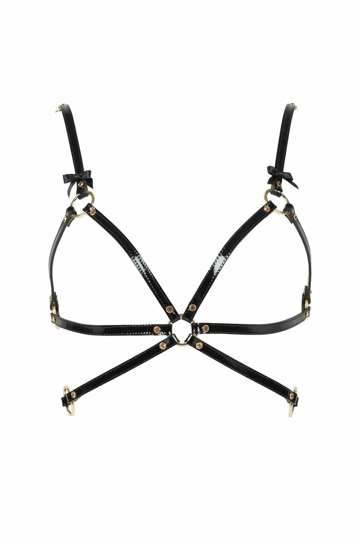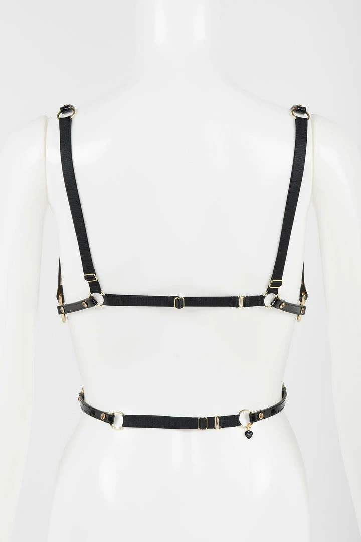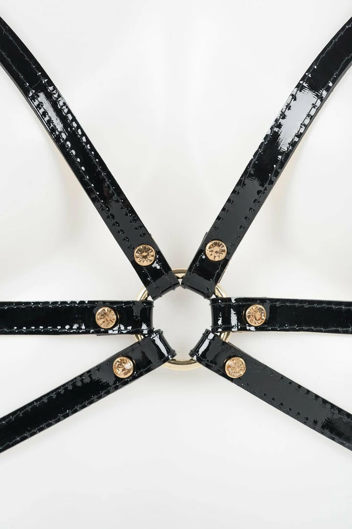 - Black Patent & Gold Metallic Stitched Leather Straps