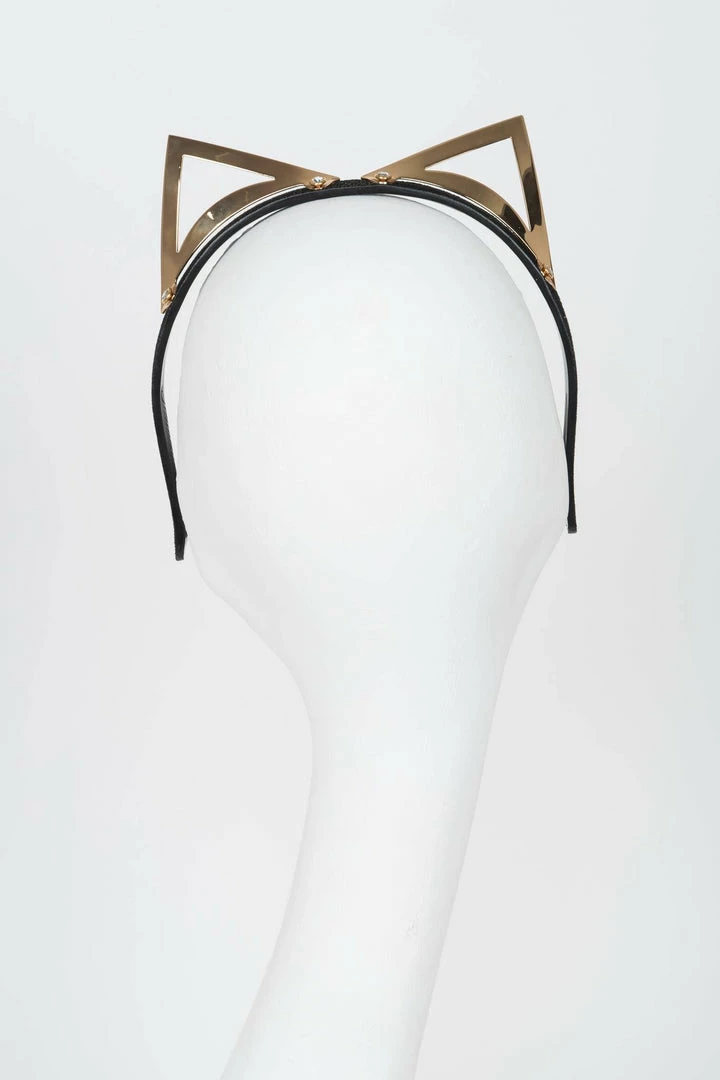 Unleash your inner Sex Kitten! Style our glamorous leather headband with your favorite lingerie look to spicy things up in the bedroom. Features 18K Gold plated cut out kitten ears, Swarovski® crystal rivets and luxury leather. The best part is, it’s ultra comfortable. Sleek, sexy and stylish!