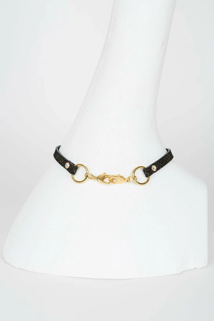 - Black Gold Foil Print Stitched Leather Straps