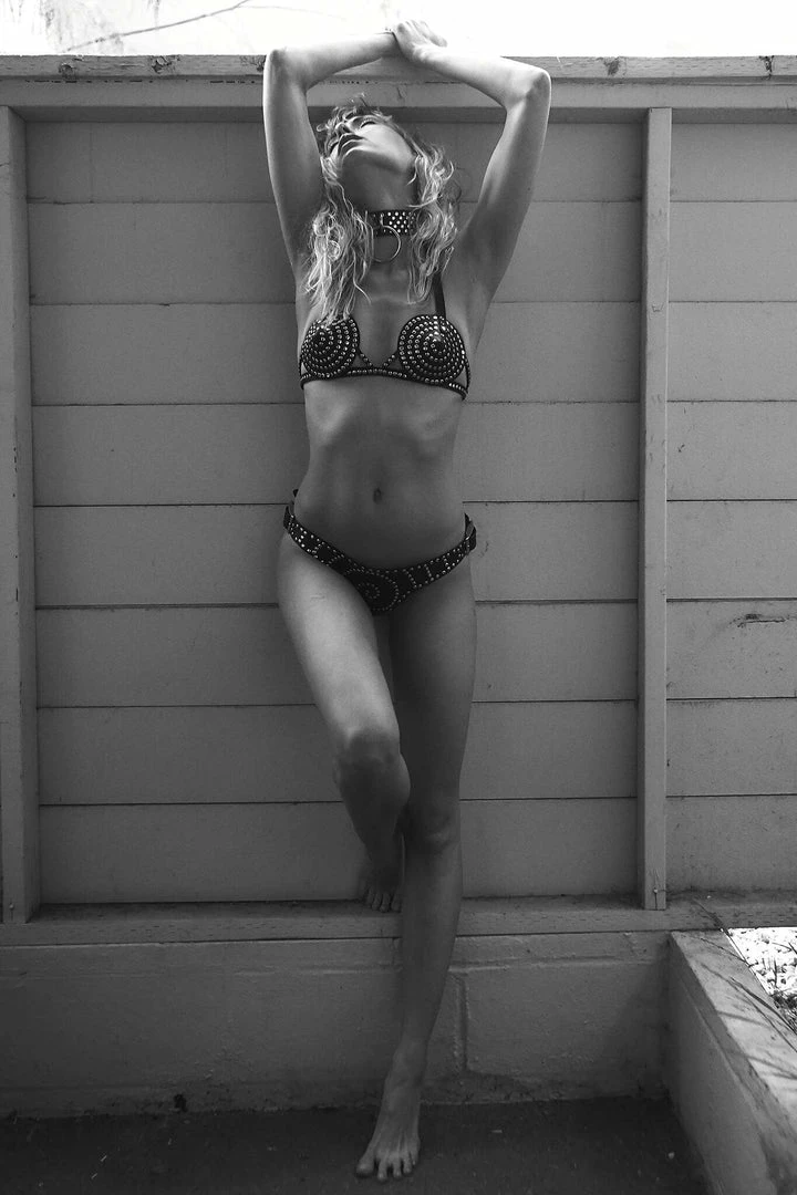 The Bella Donna braโs classic lines feature hundreds of spiraling rivets to hypnotize the eye.