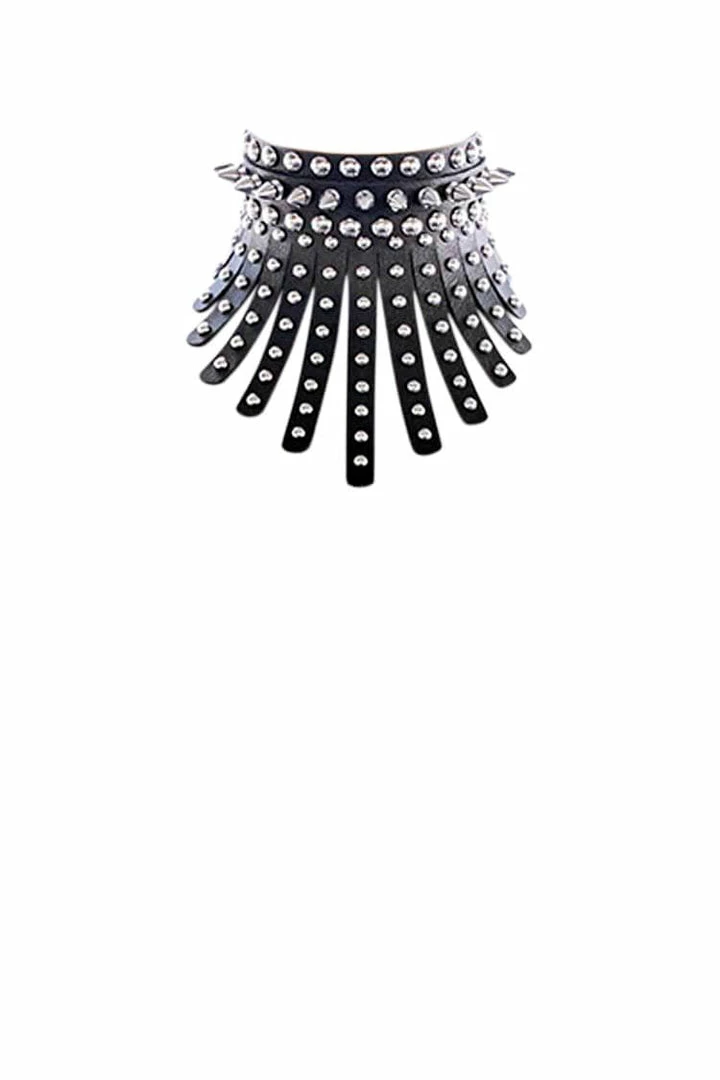 The Stella set is inspired by the heavily gilded armor worn throughout the 14th century. The chokerβs leather falls feature hand set dome rivets that draw the eye upward to its spike embellished neck piece.