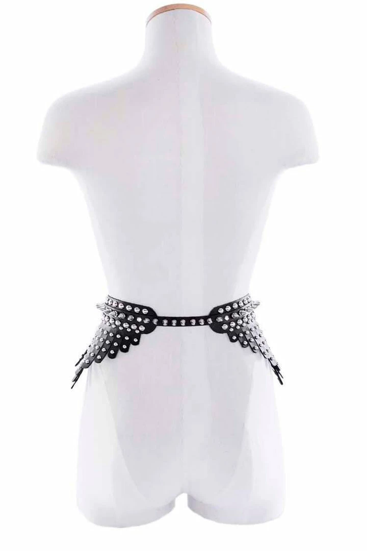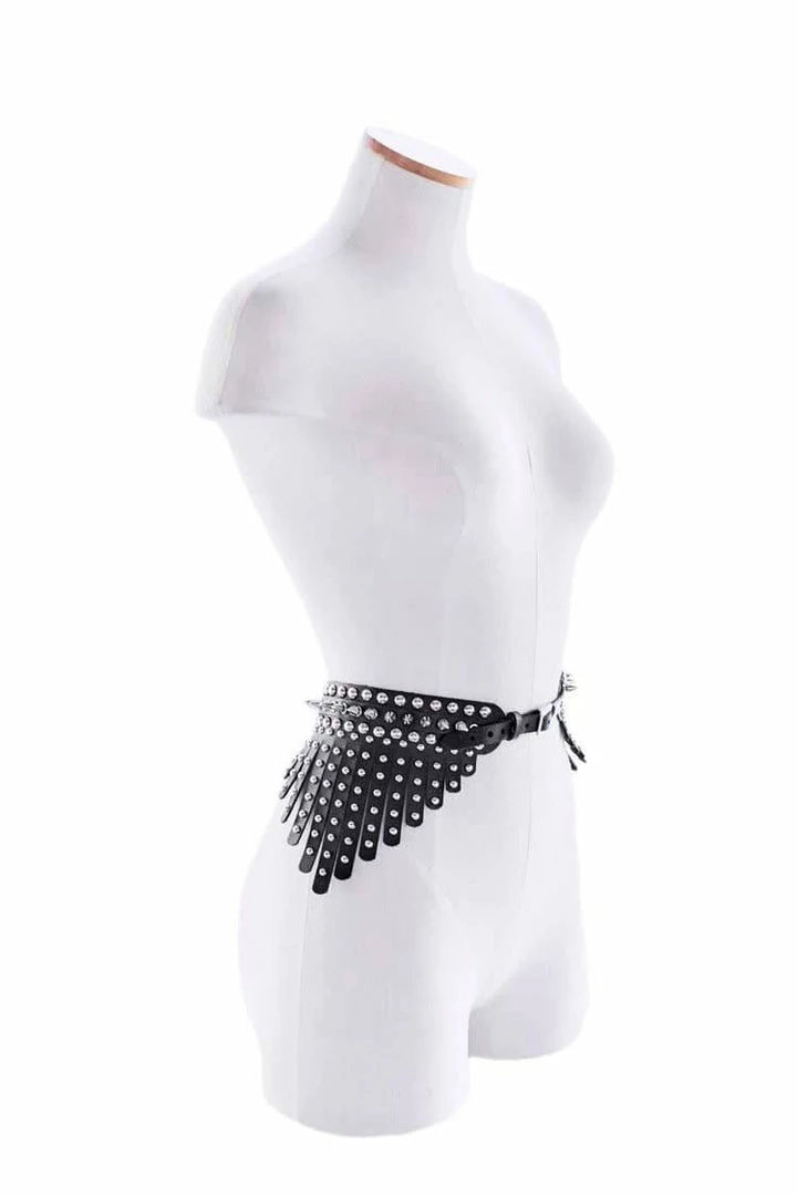 The Stella is inspired by the heavily gilded armor worn throughout the 14th century. ThisΒ Peplum Belt features embellished leather falls, and a fully spiked waist band. This piece elevates the style of your little black dress, or shines on its own.