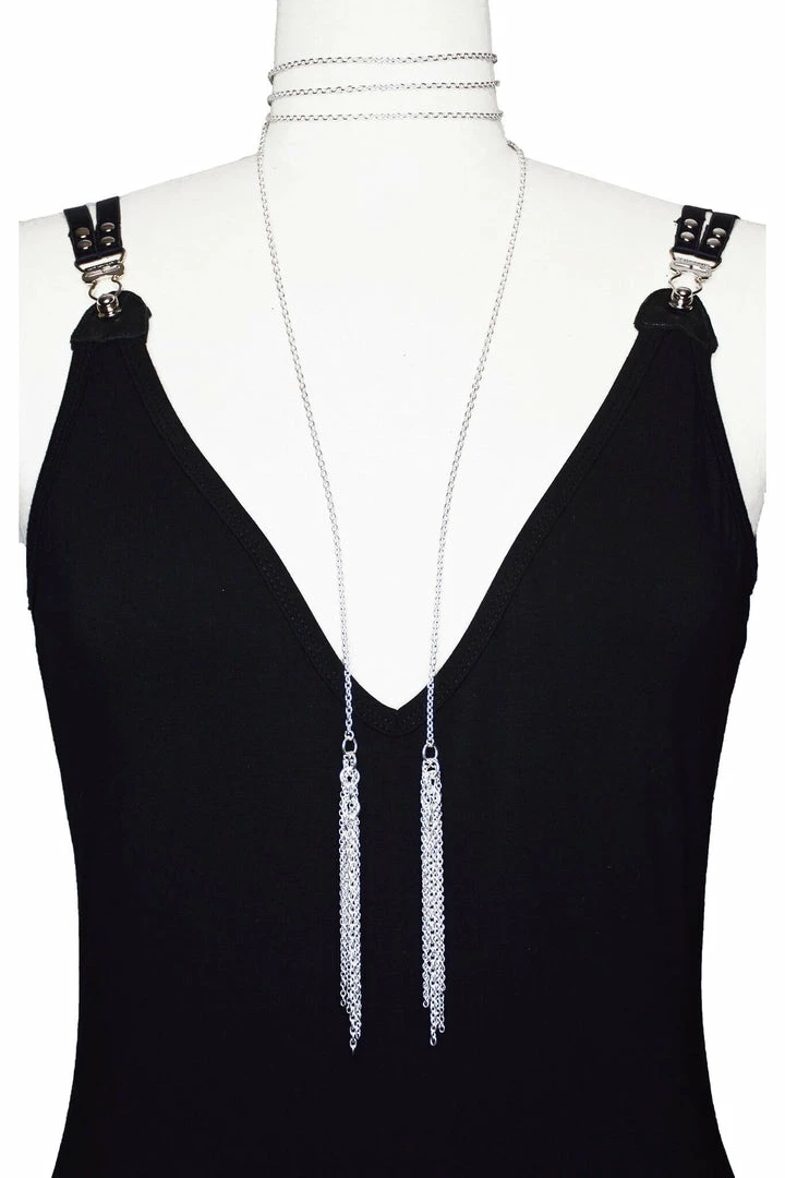 Bohemian meets elegance with this versatile lariat-wrap necklace. Wrap yourself with over five feet of sterling silver with two silver fringe tassels, either as a necklace or around your waist as a stylish belt.