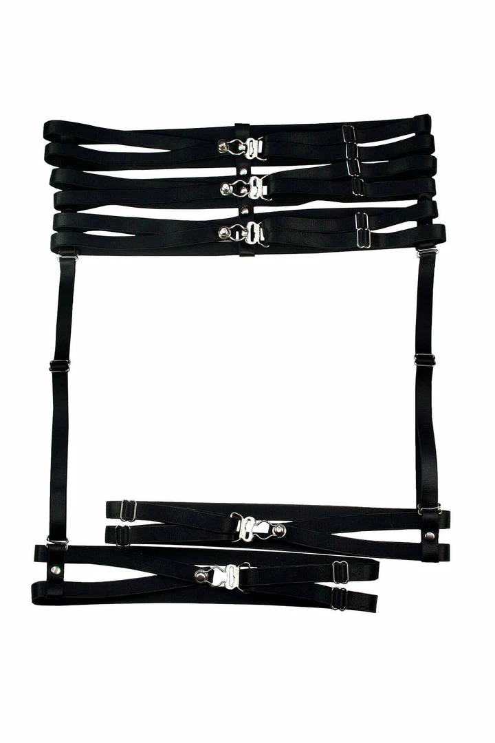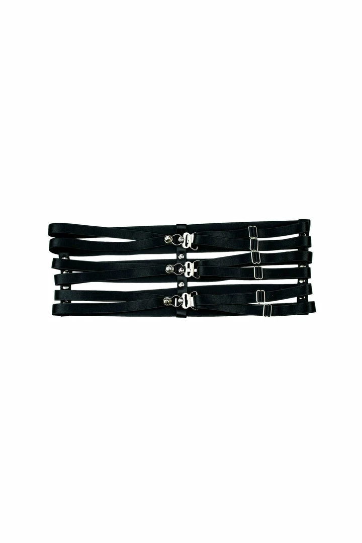 Satisfy that desire for more with a truly unique and decadent experience in Lalitaβs exclusive Body Garters. Fully adjustable, the body garter wraps you in a custom embrace of six lengths of elastic and three silver garter closures. Enjoy this one-of-a-kind piece pressed against your skin or atop your clothing in a bold statement.Β