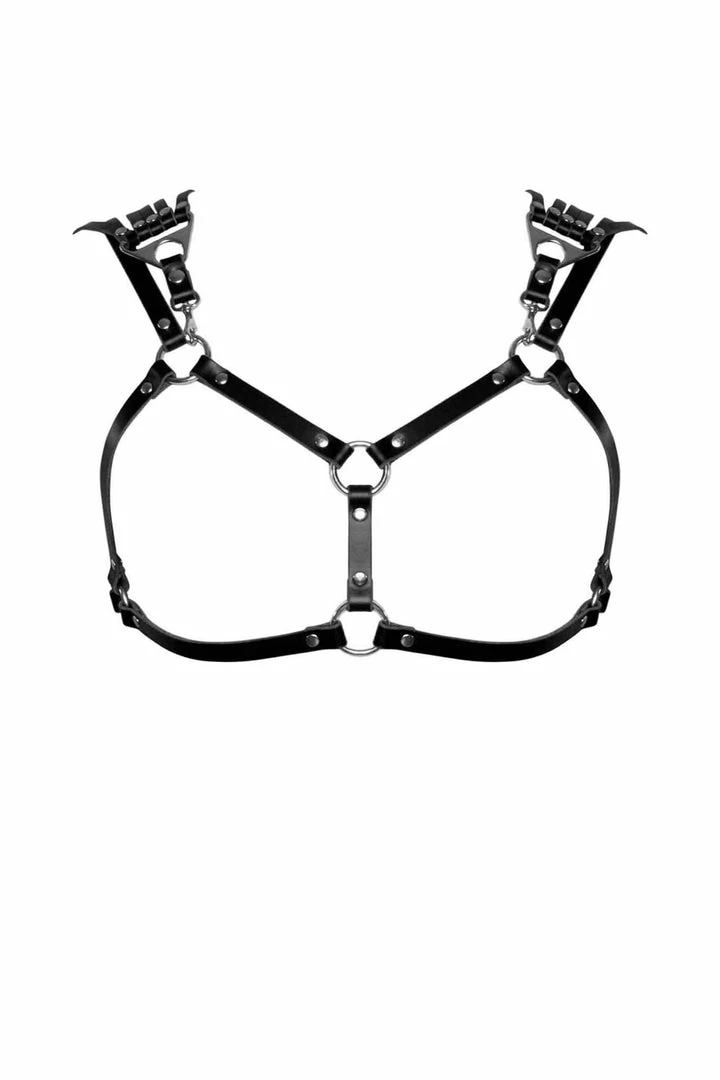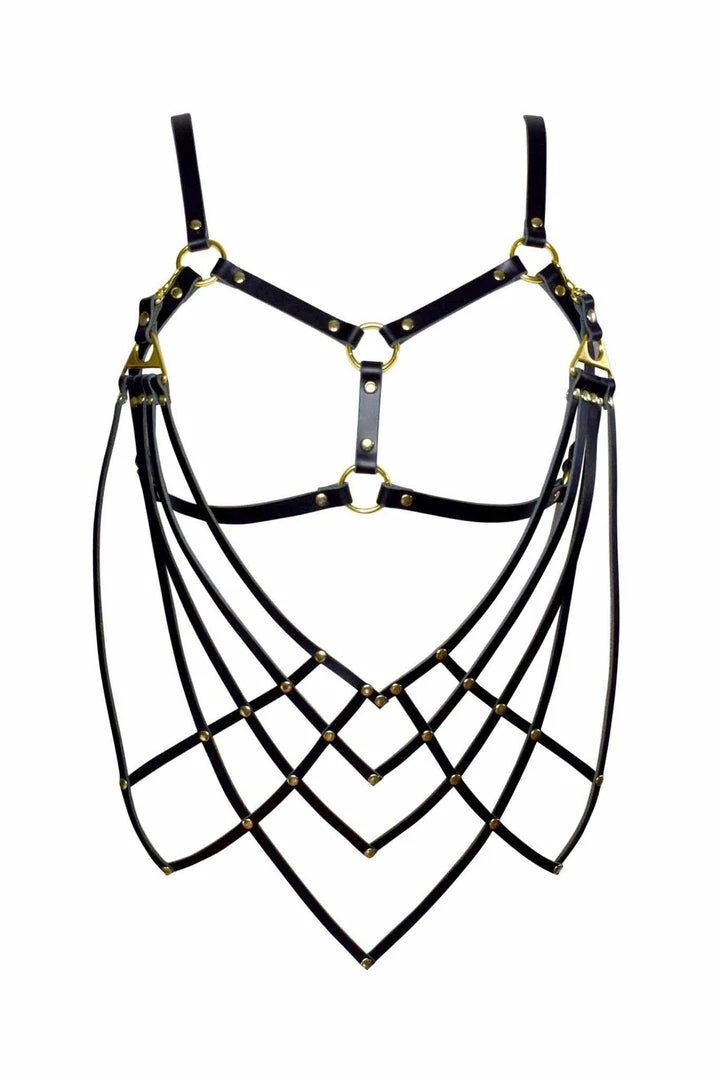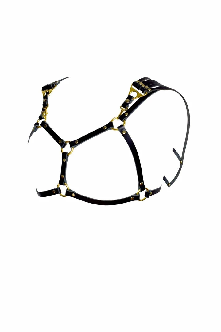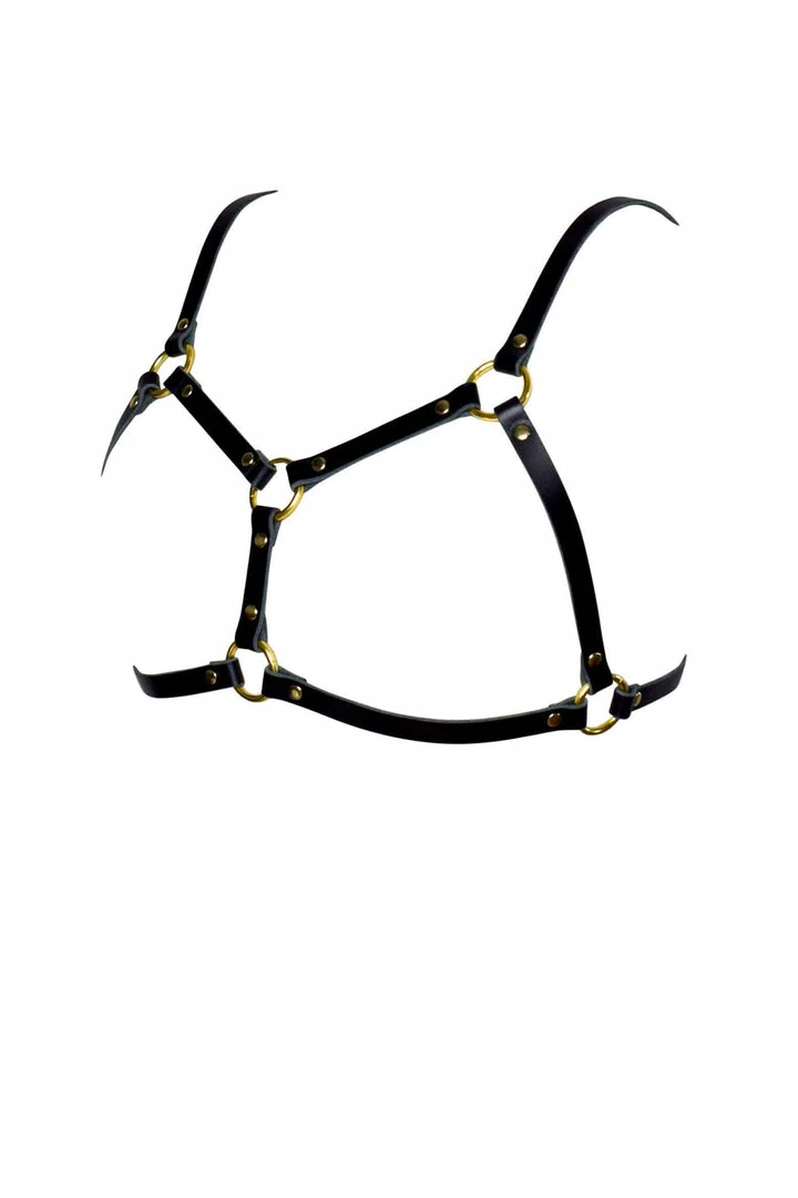 - Simple frame harness bra made from Β½β wide leather straps
