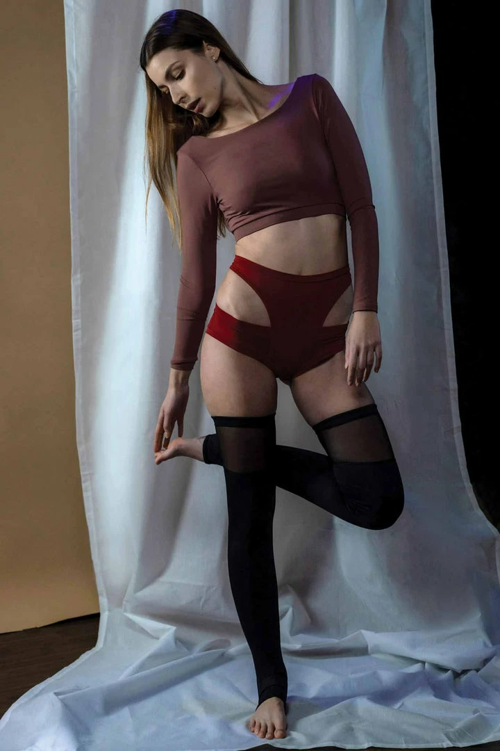 Aleksandra is an attention grabber. The eye-catching sporty top and bottom set has a retro feel to it, while keeping the contemporary edge to your look. It can also be used as swimwear or everyday wear.