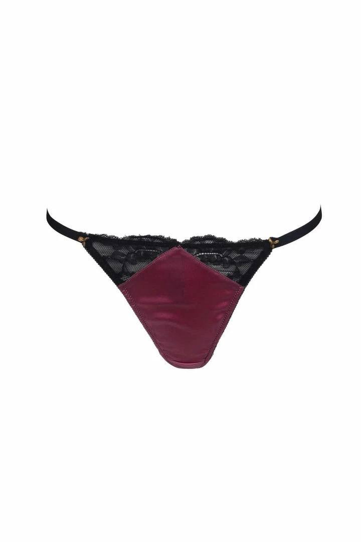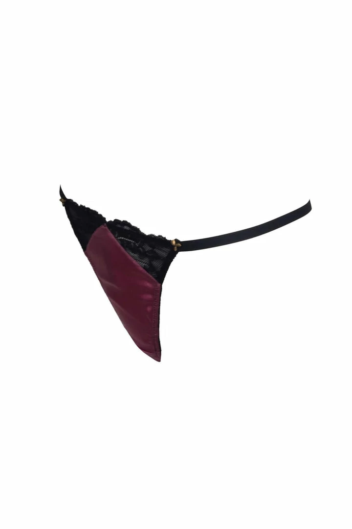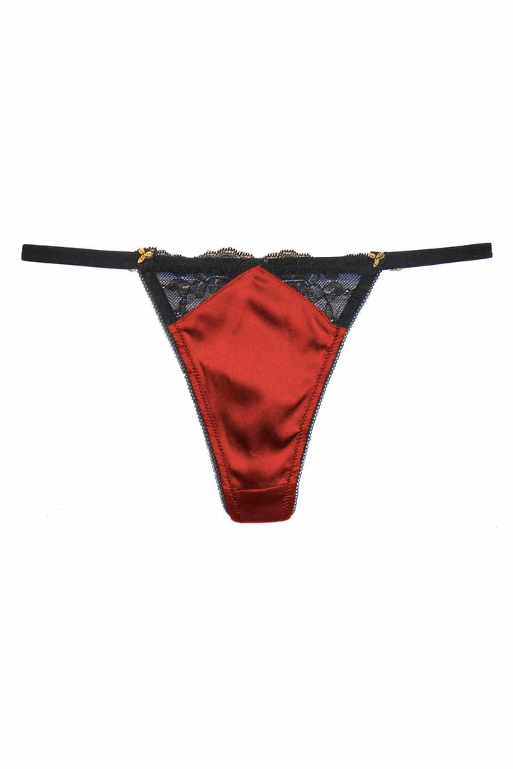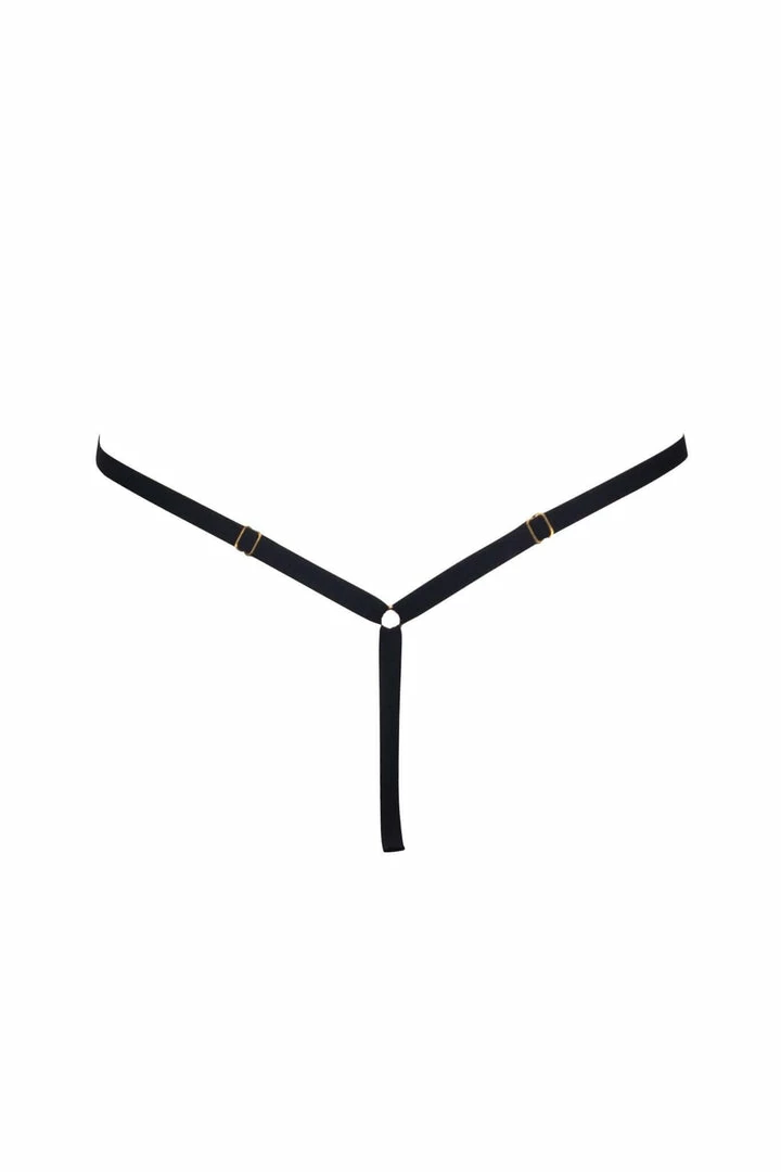 The Fever & Thoughts Adjustable Thong is a tempting piece with precisely placed gold metal beads and sheer scalloped lace inserts. Not only seductive, it will adjust to fit your form. Part of the Fever & Thoughts Thong Set