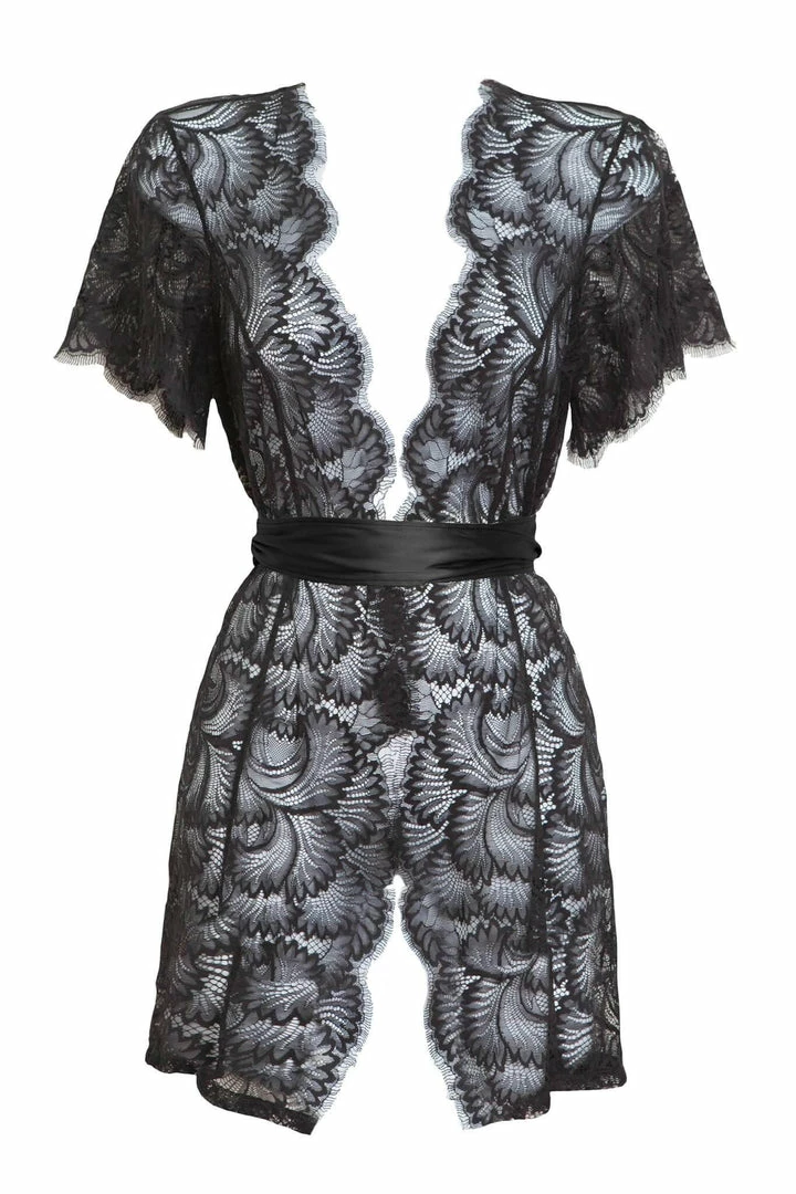 Arousing the timeless dark romantic youβll move through the bedroom with purpose in this seductive bed jacket, crafted from deliciously delicate eyelash lace and silk charmeuse. Made to be worn over anything or nothing at all, this piece adorns the body for a day of play or a night in for one.