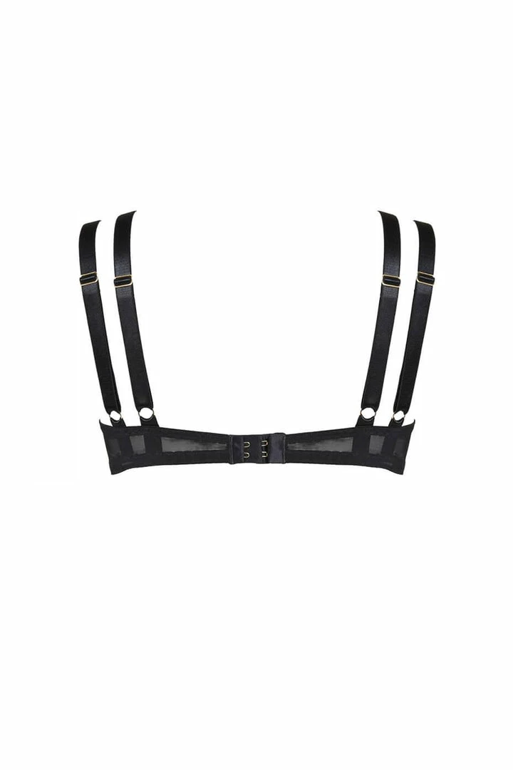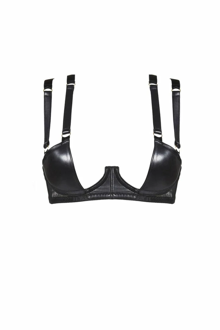 Cause a stir in the striking Nina Demi bra. The soft, padded leather half-cups make this bra a bold statement piece whilst still giving shape and lift. The double leather straps make sure this bra sits perfectly against your skin and offers surprising support; show them off by making them part of your outfit. Top stitched leather on the centre cradle adds to the sleek, bold design of Nina.