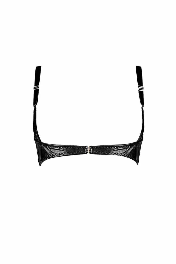 Japanese Plonge Leather and sheer tulle, create elements of reveal in this underbust harness finished with gold details.