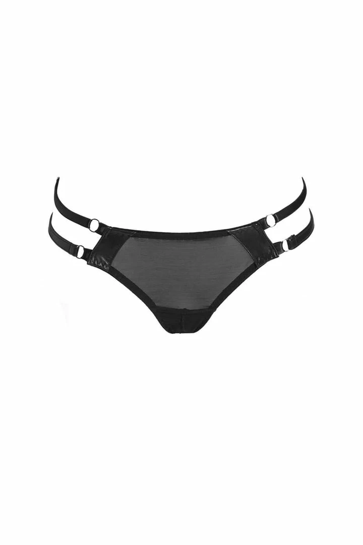 Meet the most bold and seductive brief of the Nina collection; the Nina Ouvert. Sheer mesh panels are mixed with leather strap detailing to create a contrasting combination of modern romance. This brief’s adjustable side straps mean you can tailor it to your body. The cutaway panels and open seamed crotch add to Ninaβs provocative and playful style.