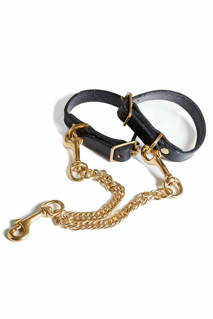 Half inch handmade leather cuffs with center hook. Designed to be attached to the Nina Leather Bodysuit and other accessories in the Something Wicked collection.