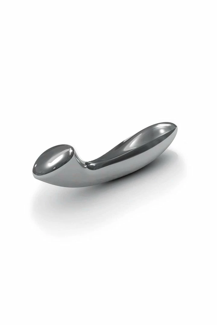 Olga takes a luxurious approach to the pleasure object. Made of stainless steel, the metal creates an enticing sensation against the skin, with the option for users to manipulate the sensation of hot or cold. With one end precisely designed to reach and stimulate the G-spot area, and the other fashioned for conventional erotic stimulation.