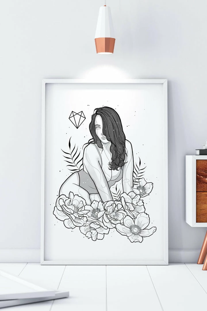 Make a statement in the room with classy, elegant art. Commissioned exclusively by Darkest Fox, this gorgeousΒ print is inspired by our muse and Darkest Vixen, Miss Vixx. Illustration by UK tattoo artist @wolfmumma.
