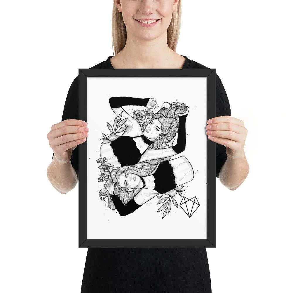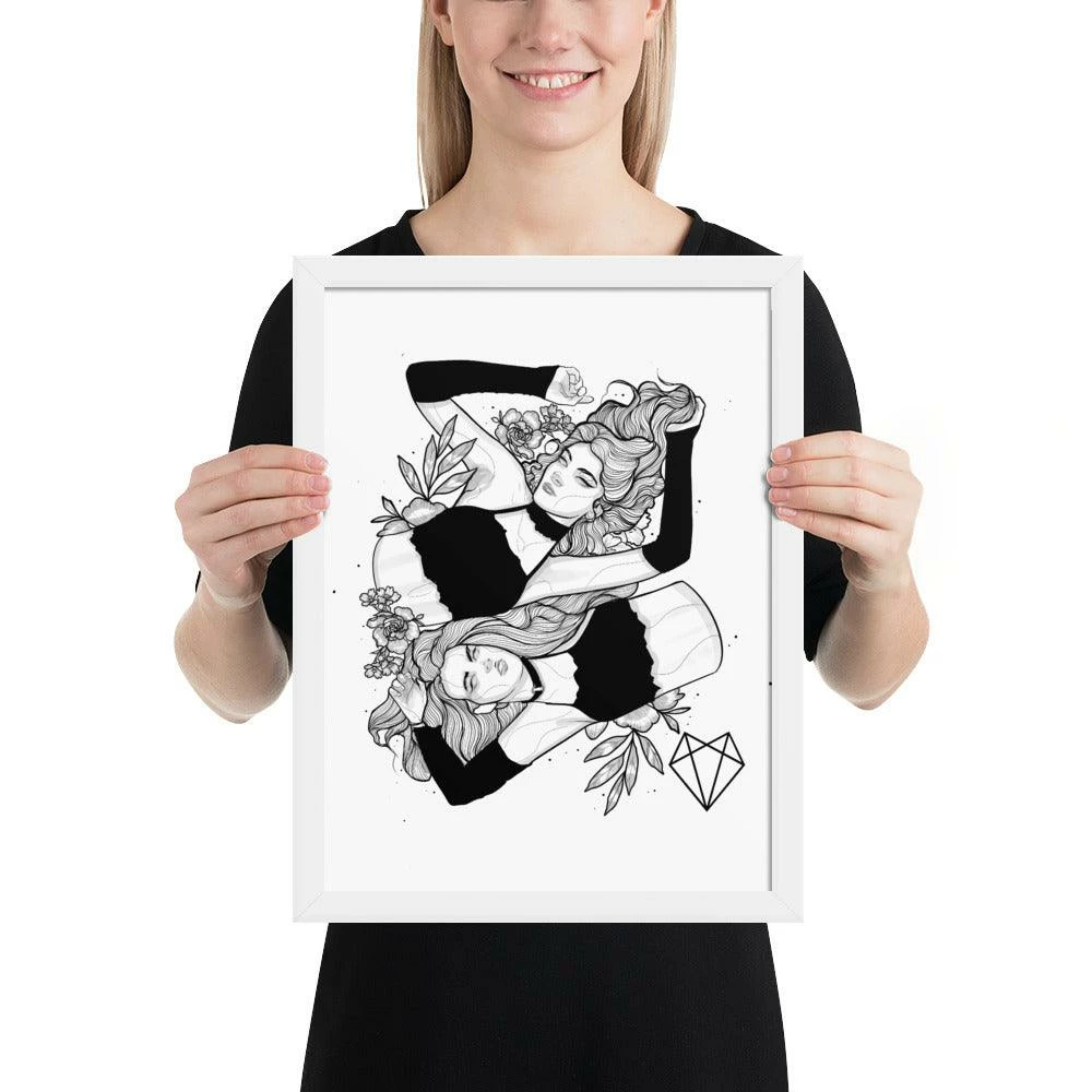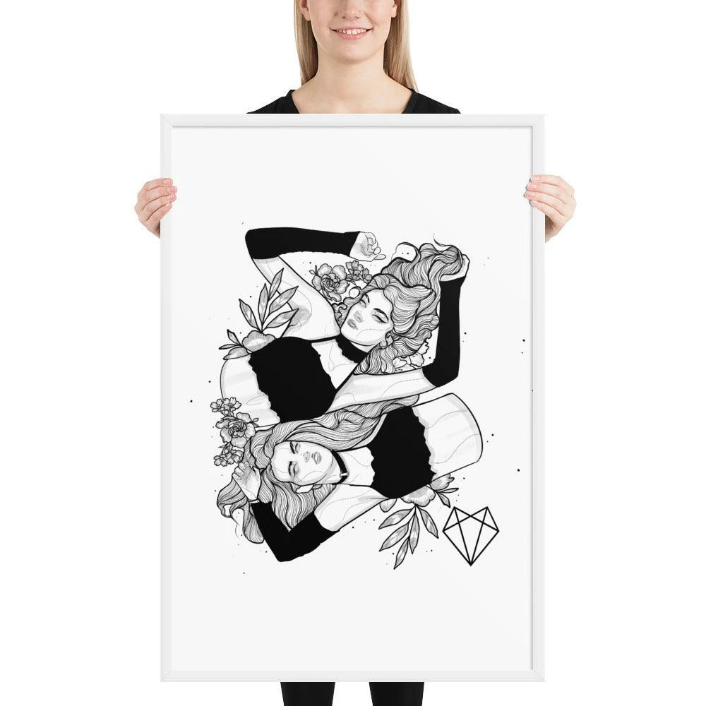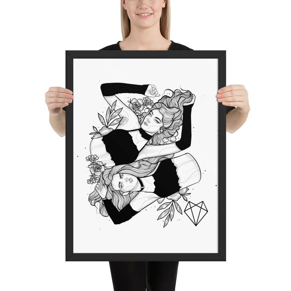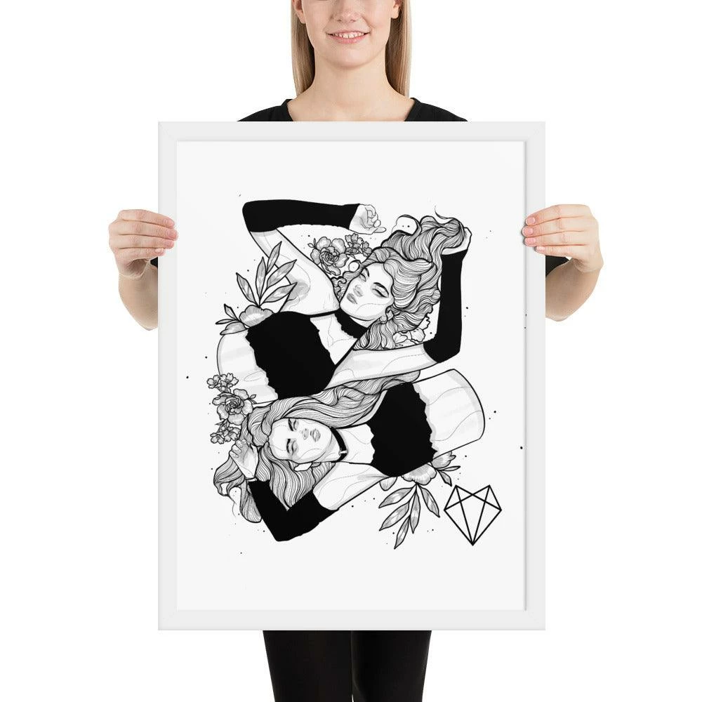 Make a statement in the room with classy, elegant art. Commissioned exclusively by Darkest Fox, this gorgeousΒ print is inspired by our muses and Darkest Vixens, Alli and Julie. Illustration by UK tattoo artist @wolfmumma.