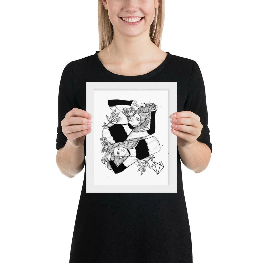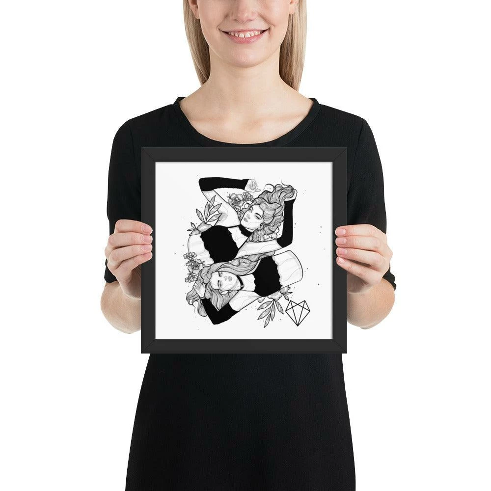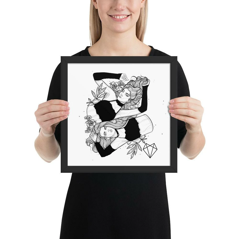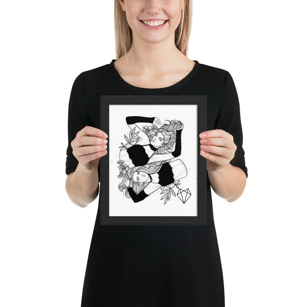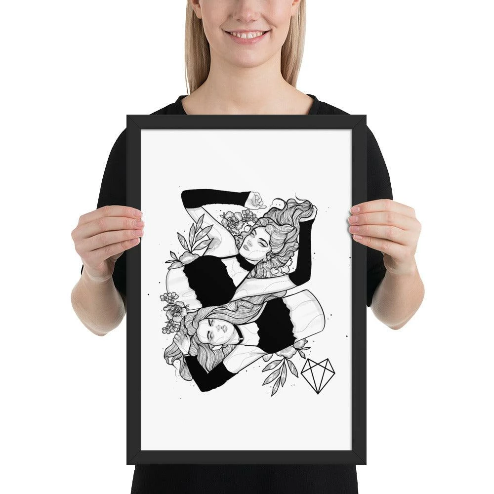 Make a statement in the room with classy, elegant art. Commissioned exclusively by Darkest Fox, this gorgeousΒ print is inspired by our muses and Darkest Vixens, Alli and Julie. Illustration by UK tattoo artist @wolfmumma.